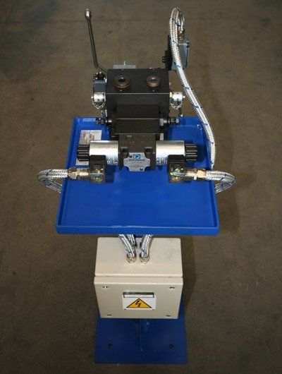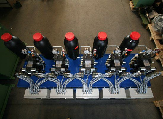 Banco per comando utenze su gabbie laminatoio con accumulatore per bilanciamento rulli di laminazione