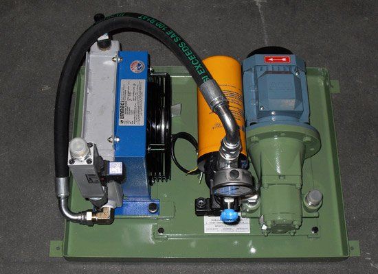 Gruppo raffreddamento olio riduttore per macchina combinata Pompa ad ingranaggi, flussostato , radiatore di raffreddamento aria-olio. Filtro in mandata da 25 micron.